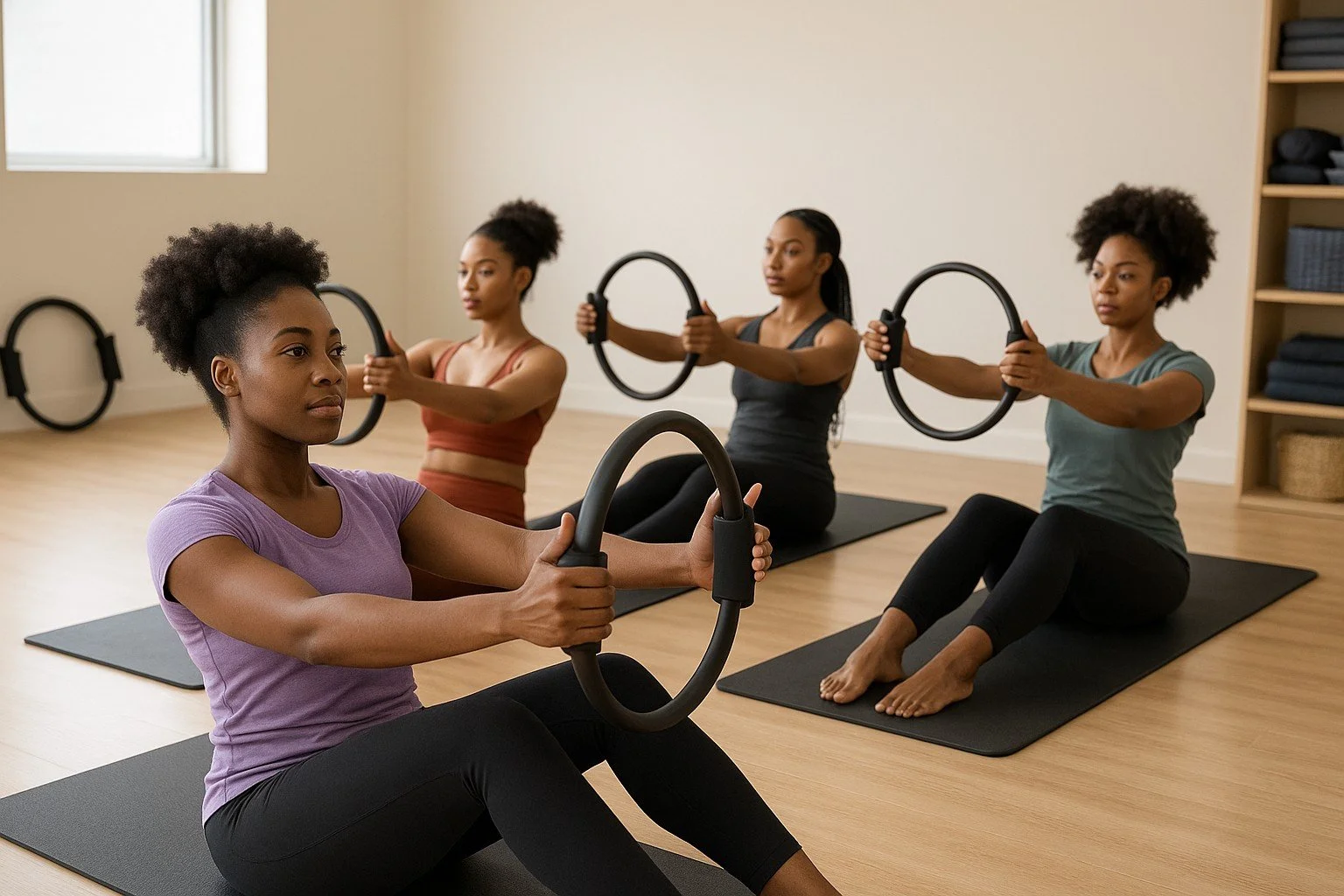 Join our magic circle class online every Monday at 6pm. Get ready to sweat. Grab your magic circle, water bottle, and towel and meet us on the mat.